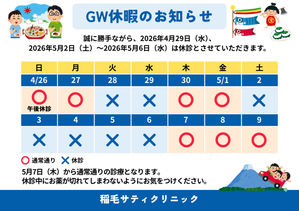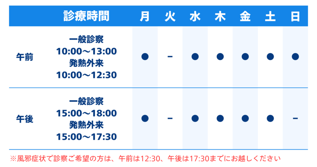 日曜日は発熱(感染症)で診察される方で混雑することがございます。